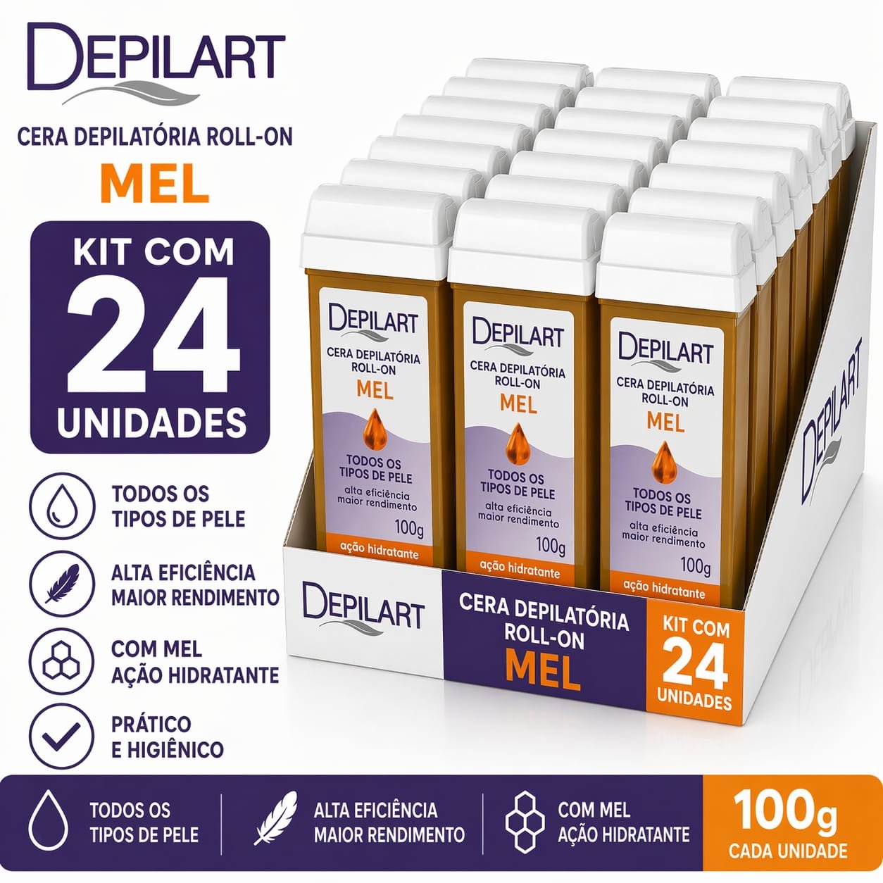 Se você busca equilíbrio entre custo e quantidade, o Kit com 24 Ceras Roll-On Depilart Mel é ideal para profissionais que estão aumentando a demanda ou desejam manter um bom estoque sem investir em grandes volumes.